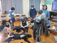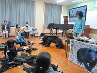 19日(金)県の熊対策員の方に来ていただき、出前授業がありました。「ツキノワグマを知ろう」という演題でお話をお聞きしました。授業に当たってとてもたくさんの資料をご持参いただき、剥製や食べているものなど、実際に触ったりしながら見せていただきました。お話の中ではツキノワグマの生態や特徴など多くを教えていただきました。また出会わないようにするために、また出会ってしまったらどうするか等のお話もいただきました。最後は熊のカルタで楽しみながらおさらい。大事なことを楽しく学ばせていただくことができました。