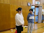 2月3日に節分集会がありました。今回の集会は5,6年生が企画、運営してくれました。最初に豆まきの歌を全員で歌い、続いて模造紙に書いた的を目がけてボールを投げ、カーリングのように誰が一番近くに近づけられるかのゲームをしました。みんな楽しみながら喜んでチャレンジしていました。その後、自分が追い出したい鬼を思いながら、鬼に向かって豆を投げました。たくさん投げることができました。鬼を追い出して、今年一年みんなが元気に過ごせるといいなあと思います。5,6年生のおかげで楽しい節分集会になりました。